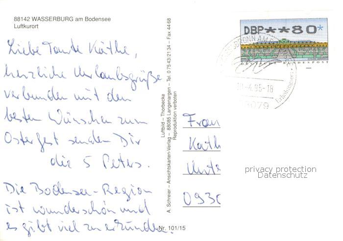 73110387 alte Postkarte Wasserburg Bodensee Fliegeraufnahme Lindau Didamskopf Kanisfluh postalisch gelaufen Erhaltung siehe scans [NatalD47] KatCode: 11110009776128