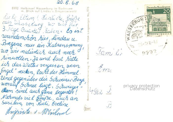73776756 alte Postkarte Wasserburg Bodensee Fliegeraufnahme mit Blick auf Lindau und Bregenzerwald postalisch gelaufen Erhaltung siehe scans [WerneD78] KatCode: 11110009776128