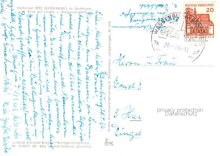 73811177 alte Postkarte Wasserburg Bodensee Fliegeraufnahme mit Lindau postalisch gelaufen Erhaltung siehe scans [FriedD77] KatCode: 11110009776128