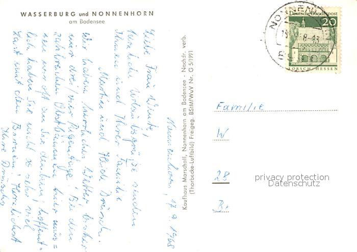 73174744 alte Postkarte Wasserburg Bodensee Fliegeraufnahme Nonnenhorn postalisch gelaufen Erhaltung siehe scans [NatalD47] KatCode: 11110009776128