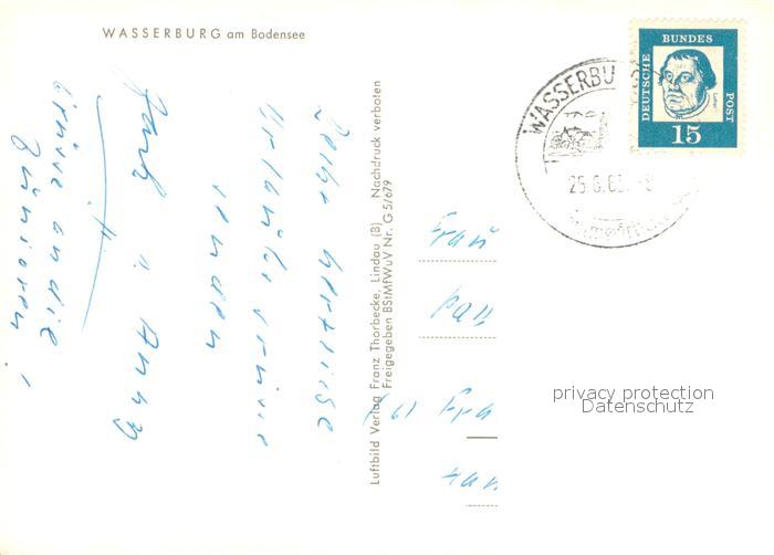 73720325 alte Postkarte Wasserburg Bodensee Hafen postalisch gelaufen Fliegeraufnahme Erhaltung siehe scans [FriedD77] KatCode: 11110009776128
