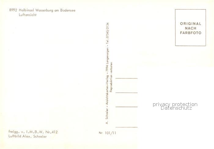 73323057 Wasserburg Bodensee Halbinsel Alpen Fliegeraufnahme postalisch nicht gelaufen Erhaltung siehe scans [FriedD77] KatCode: 11110009776128
