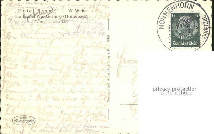 72293390 alte Postkarte Wasserburg Bodensee Halbinsel Alpenblick postalisch gelaufen Erhaltung siehe scans KatCode: 11110009776128