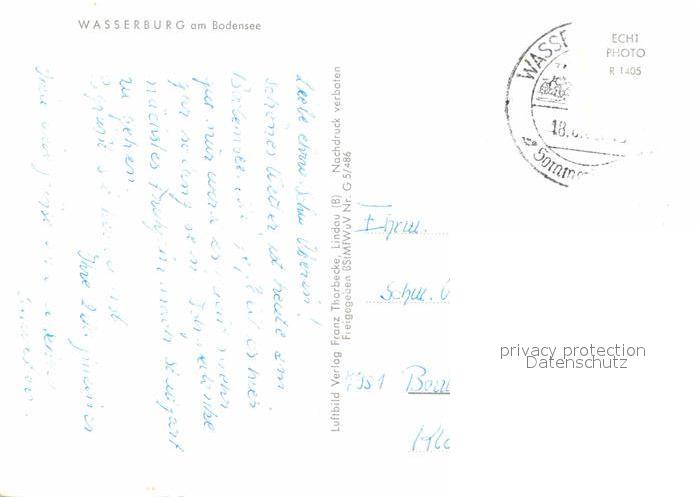 72694069 alte Postkarte Wasserburg Bodensee Halbinsel Alpenkette Fliegeraufnahme postalisch gelaufen Erhaltung siehe scans [FriedD77] KatCode: 11110009776128