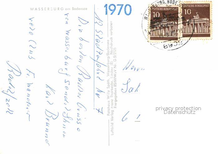 72694004 alte Postkarte Wasserburg Bodensee Halbinsel Fliegeraufnahme postalisch gelaufen Erhaltung siehe scans [FriedD77] KatCode: 11110009776128