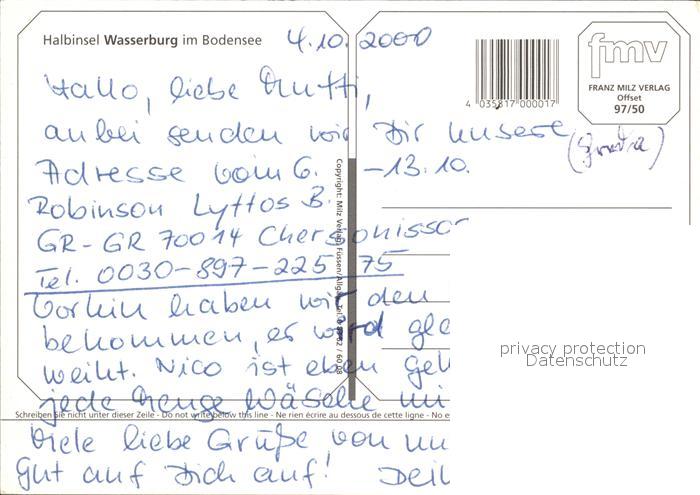 72469298 Wasserburg Bodensee Halbinsel Fliegeraufnahme postalisch nicht gelaufen Erhaltung siehe scans KatCode: 11110009776128