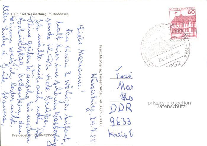 72248475 alte Postkarte Wasserburg Bodensee Halbinsel Fliegeraufnahme postalisch gelaufen Erhaltung siehe scans KatCode: 11110009776128