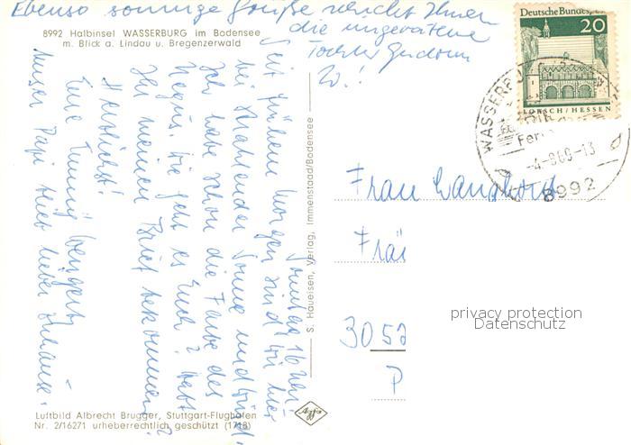 73765210 alte Postkarte Wasserburg Bodensee Halbinsel mit Blick auf Lindau und Bregenzerwald Alpen postalisch gelaufen Fliegeraufnahme Erhaltung siehe scans [FriedD77] KatCode: 11110009776128