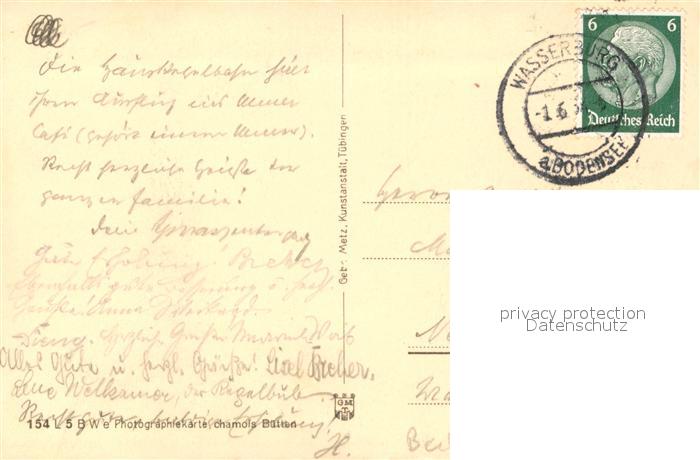 43511619 alte Postkarte Wasserburg Bodensee Hoehencafe Weinrestaurant Seeblick Chamois Buetten postalisch gelaufen Erhaltung siehe scans [FriedD77] KatCode: 11110009776128