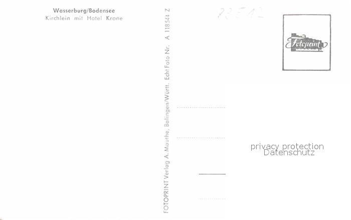 72892315 Wasserburg Bodensee Kirchlein Hotel Krone postalisch nicht gelaufen Erhaltung siehe scans [KathaD81] KatCode: 11110009776128
