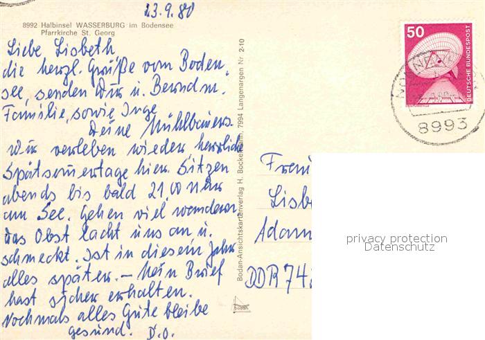 72860983 alte Postkarte Wasserburg Bodensee Pfarrkirche Sankt Georg postalisch gelaufen Erhaltung siehe scans [AndreD76] KatCode: 11110009776128