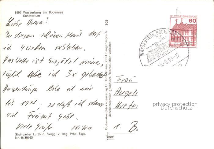 72421440 alte Postkarte Wasserburg Bodensee Sanatorium postalisch gelaufen Erhaltung siehe scans KatCode: 11110009776128