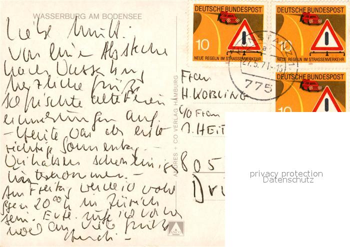 73181322 alte Postkarte Wasserburg Bodensee Uferpartie am See Blick zur Kirche postalisch gelaufen Erhaltung siehe scans [FriedD77] KatCode: 11110009776128