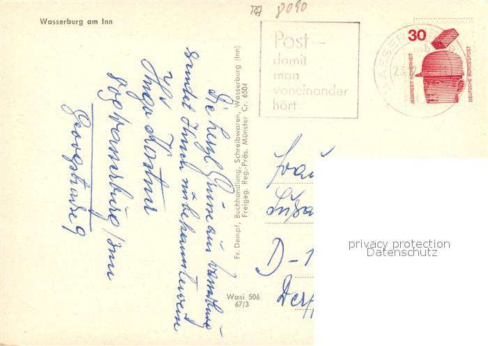 73204013 alte Postkarte Wasserburg Inn Fliegeraufnahme postalisch gelaufen Erhaltung siehe scans [NatalD47] KatCode: 11110009187182