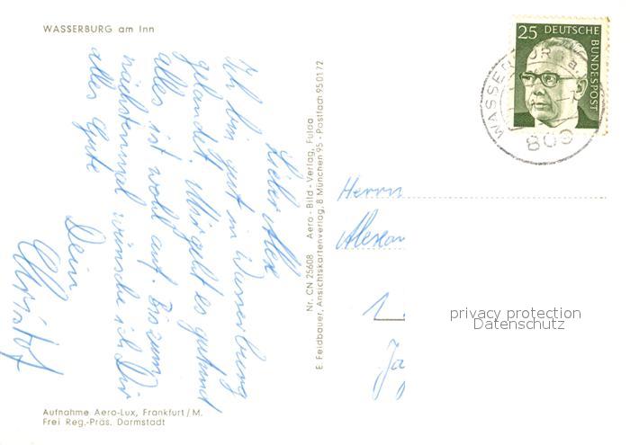 73098405 alte Postkarte Wasserburg Inn Fliegeraufnahme postalisch gelaufen Erhaltung siehe scans [KathaD81] KatCode: 11110009187182