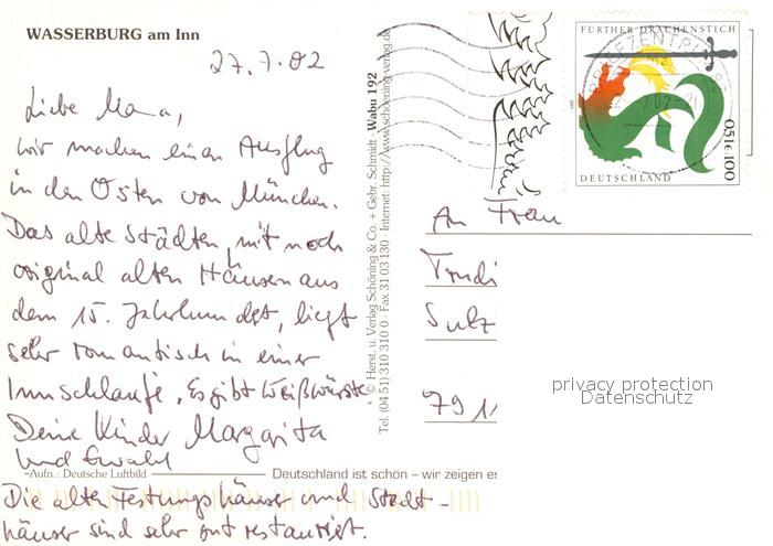 72946835 alte Postkarte Wasserburg Inn Fliegeraufnahme postalisch gelaufen Erhaltung siehe scans [KathaD81] KatCode: 11110009187182