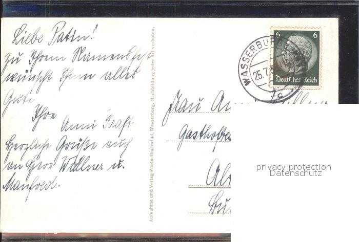 72129318 alte Postkarte Wasserburg Inn Innfront mit Bruecke postalisch gelaufen Erhaltung siehe scans KatCode: 11110009187182