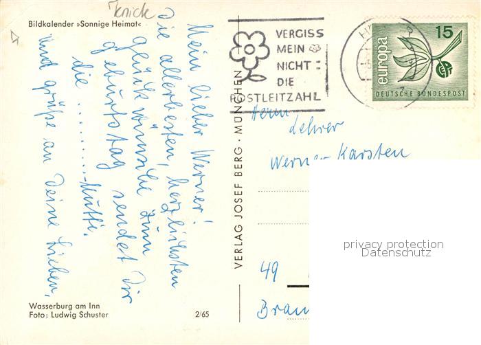 72945775 alte Postkarte Wasserburg Inn Uferpartie am Fluss Bildkalender Sonnige Heimat postalisch gelaufen Erhaltung siehe scans [FriedD77] KatCode: 11110009187182