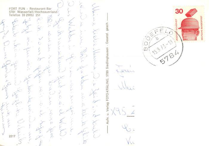 73942464 alte Postkarte Wasserfall Bestwig Fort Fun Restaurant Bar postalisch gelaufen Erhaltung siehe scans [WerneD78] KatCode: 11110005958008