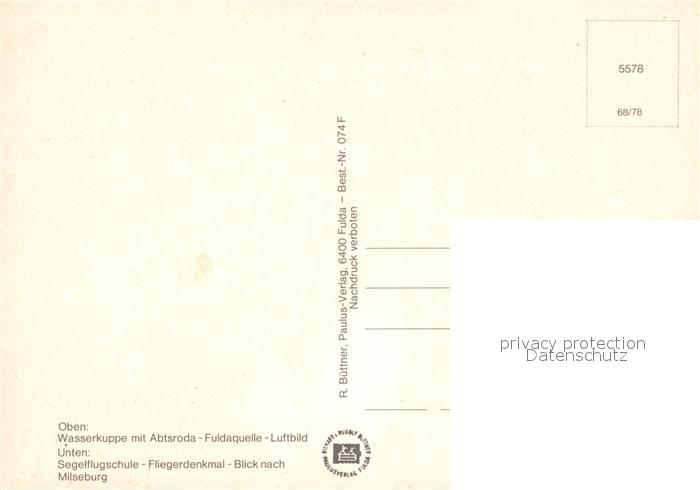 73229570 Wasserkuppe Rhoen Abtsroda Fliegeraufnahme Segelflugschule postalisch nicht gelaufen Erhaltung siehe scans [NatalD47] KatCode: 11110006631021