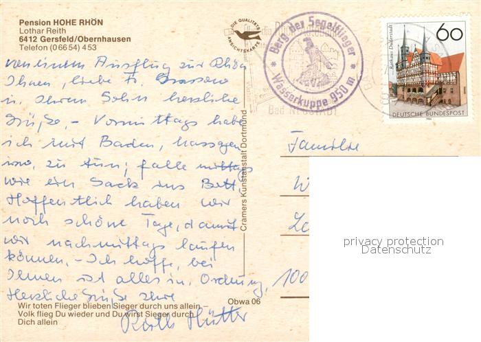 73076854 alte Postkarte Wasserkuppe Rhoen Berg der Segelflieger postalisch gelaufen Erhaltung siehe scans [KathaD81] KatCode: 11110006631021