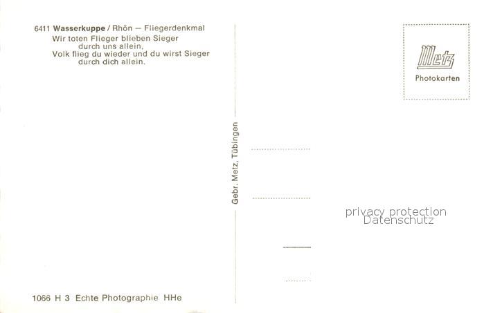 73299495 Wasserkuppe Rhoen Fliegerdenkmal postalisch nicht gelaufen Erhaltung siehe scans [PaolaD17] KatCode: 11110006631021