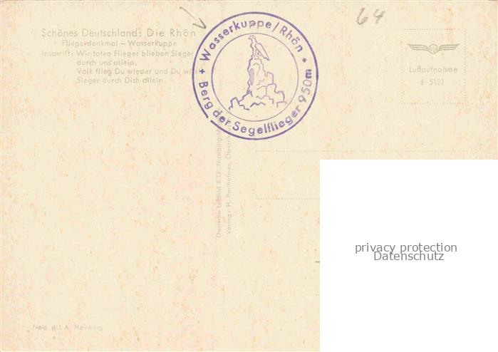 74154866 Wasserkuppe Rhoen Hessen Fliegeraufnahme postalisch nicht gelaufen Erhaltung siehe scans [WerneD78] KatCode: 11110006631021