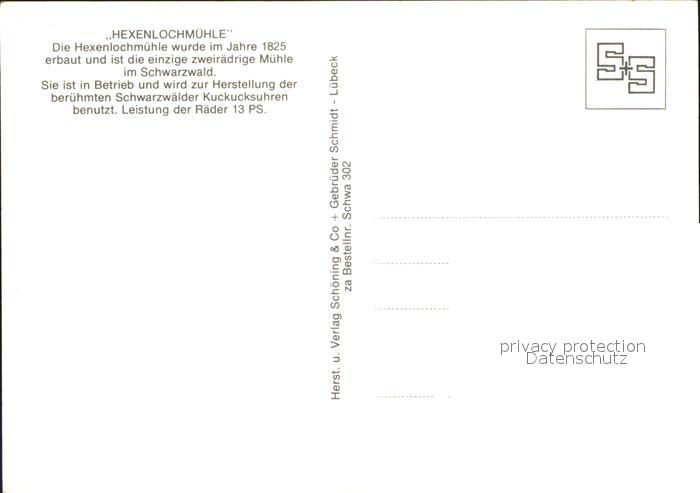 Wassermuehle Hexelochmuehle Schwarzwald postalisch nicht gelaufen Erhaltung siehe scans