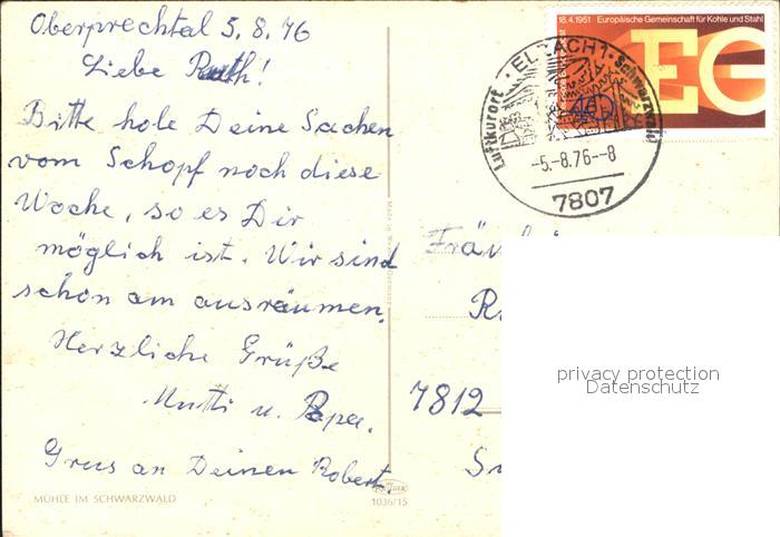 alte Postkarte Wassermuehle Schwarzwald postalisch gelaufen
