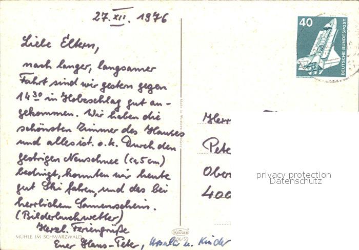 alte Postkarte Wassermuehle Schwarzwald Winter Eis postalisch gelaufen Erhaltung siehe scans