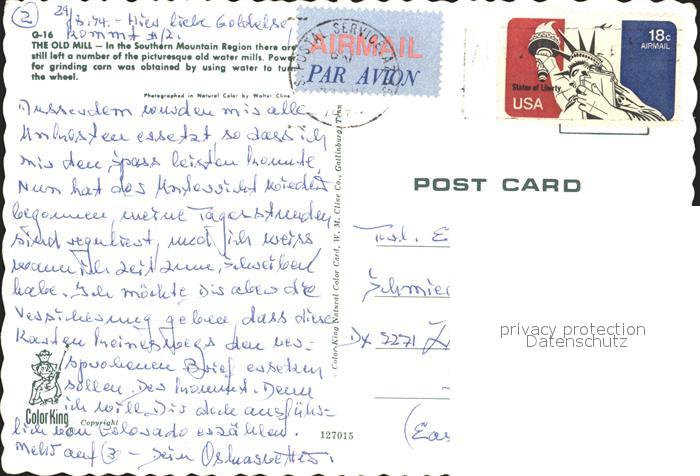 alte Postkarte Wassermuehle The Old Mill Southern Mountain Region postalisch gelaufen Erhaltung siehe scans