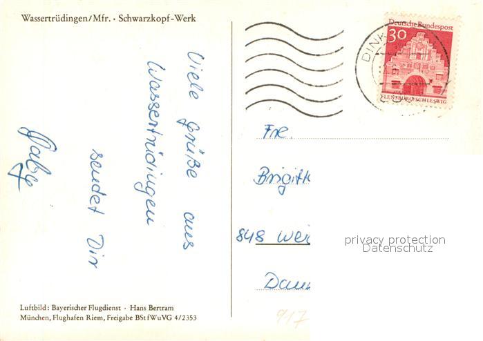 73656172 alte Postkarte Wassertruedingen Schwarzkopf Werk Fliegeraufnahme postalisch gelaufen Erhaltung siehe scans [WerneD78] KatCode: 11110009571214