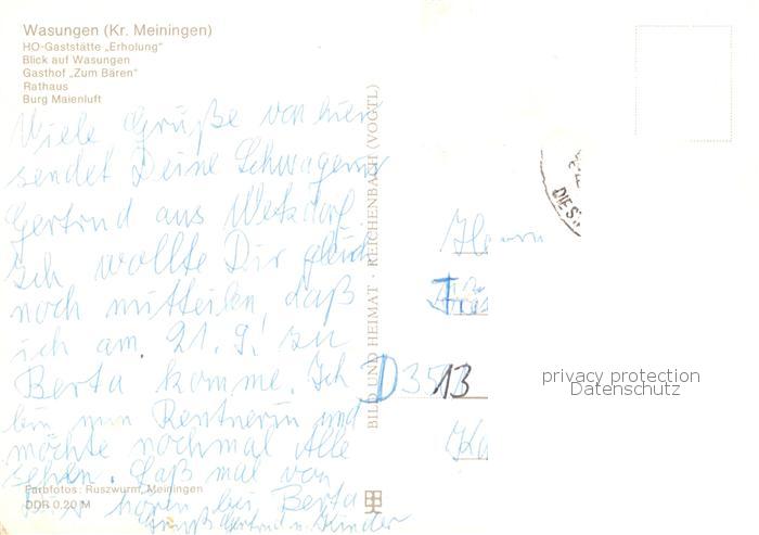 73869214 Wasungen HO Gaststaette Erholung Ortsblick Gasthof Zum Baeren Rathaus Burg Maienluft postalisch nicht gelaufen Erhaltung siehe scans [WerneD78] KatCode: 11110016066086