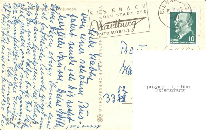 72126915 alte Postkarte Wasungen Rathaus postalisch gelaufen KatCode: 11110016066086