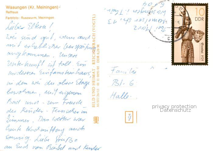 73041865 alte Postkarte Wasungen Rathaus postalisch gelaufen Erhaltung siehe scans [WerneD78] KatCode: 11110016066086