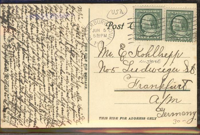 11031994 old postcard Waterbury Connecticut Strassenbahn East Main Street postalisch gelaufen KatCode: 14140070000000