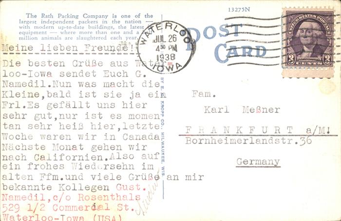 11109688 old postcard Waterloo Iowa Rath Packing Company postalisch gelaufen KatCode: 14140170000000
