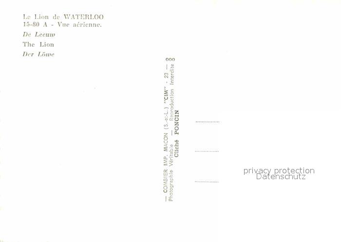 72649168 Waterloo Wallon Le Lion Loewenhuegel Monument Schlacht bei Waterloo postalisch nicht gelaufen Erhaltung siehe scans [FriedD77] KatCode: 11070025000668