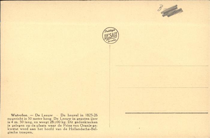 71493010 Waterloo Wallon Le Lion postalisch nicht gelaufen KatCode: 11070025000668