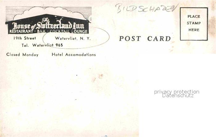 72842295 carte postale Watervliet House of Switzerland Inn postalisch gelaufen Erhaltung siehe scans [KathaD81] KatCode: 11070043005637