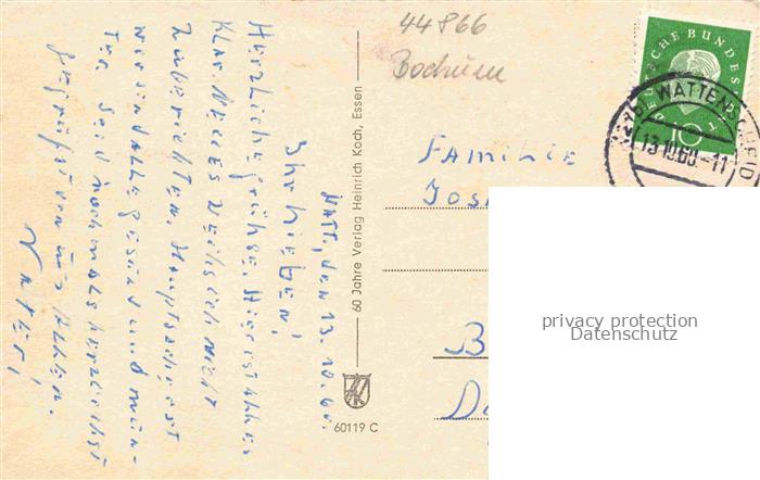 74025420 alte Postkarte Wattenscheid BOCHUM Oststrasse Bahnhof Rathaus Rosengarten Hochstrasse Stadtgarten postalisch gelaufen Erhaltung siehe scans [FriedD77] KatCode: 11110005911000