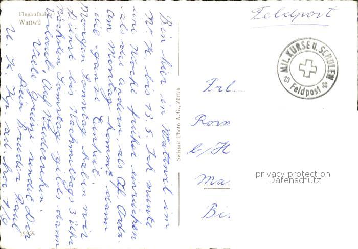 11630862 alte Postkarte Wattwil Fliegeraufnahme postalisch gelaufen Feldpost Erhaltung siehe scans KatCode: 11470190585840