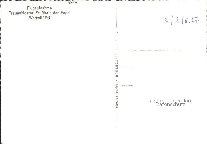 11630879 alte Postkarte Wattwil Frauenkloster St Maria der Engel Fliegeraufnahme postalisch gelaufen Erhaltung siehe scans KatCode: 11470190585840