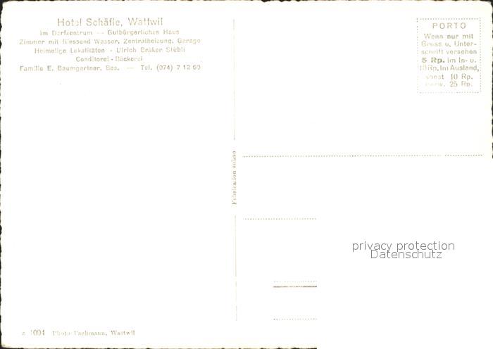 11630983 Wattwil Hotel Schaefle postalisch nicht gelaufen KatCode: 11470190585840