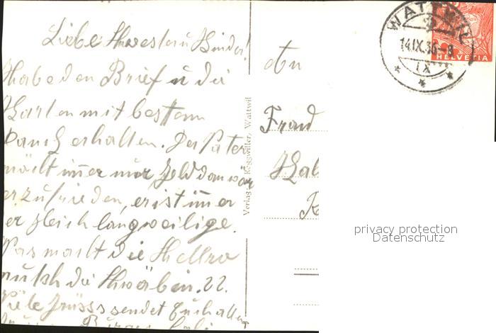 11652915 alte Postkarte Wattwil Krankenhaus postalisch gelaufen Erhaltung siehe scans KatCode: 11470190585840