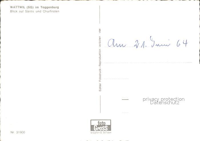 11630951 Wattwil Panorama mit Saentis und Churfirsten Bahnhof Ortsblick postalisch nicht gelaufen Erhaltung siehe scans KatCode: 11470190585840