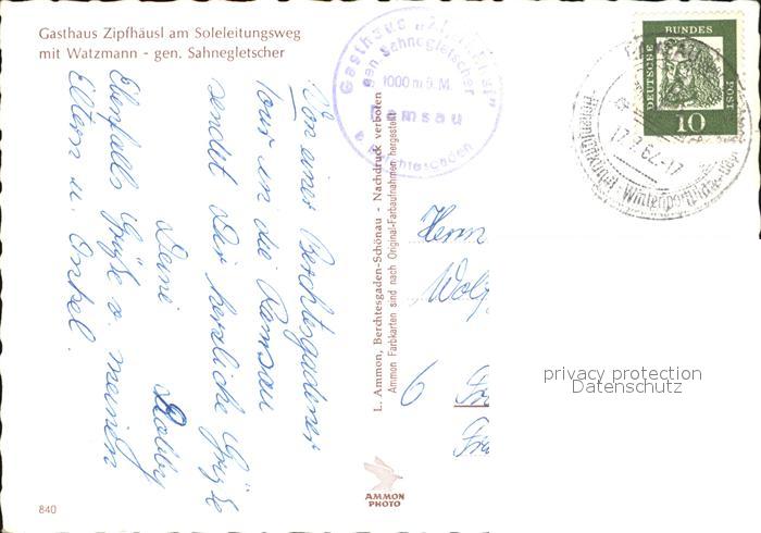 72510511 alte Postkarte Watzmann Gasthaus Zipfhaeusl Sahnegletscher postalisch gelaufen Erhaltung siehe scans KatCode: 11110009172116