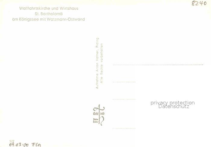 72912176 Watzmann Wallfahrtskirche und Wirtshaus St. Bartholomae am Koenigssee postalisch nicht gelaufen Erhaltung siehe scans [LiesaD40] KatCode: 11110009172116