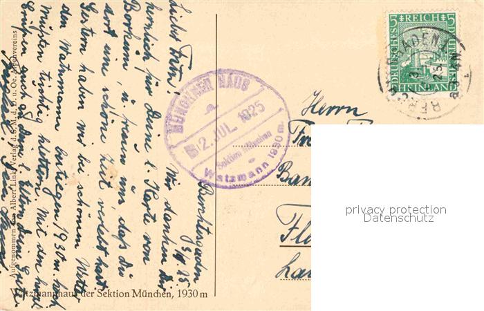 72843291 alte Postkarte Watzmannhaus Sektion Muenchen postalisch gelaufen Erhaltung siehe scans [KathaD81] KatCode: 11110009172116