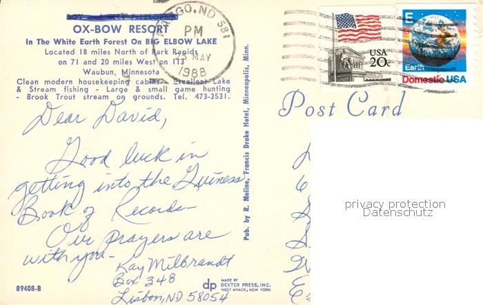 73131591 old postcard Waubun OX Bow Resort postalisch gelaufen Erhaltung siehe scans [KathaD81] KatCode: 14140250000000